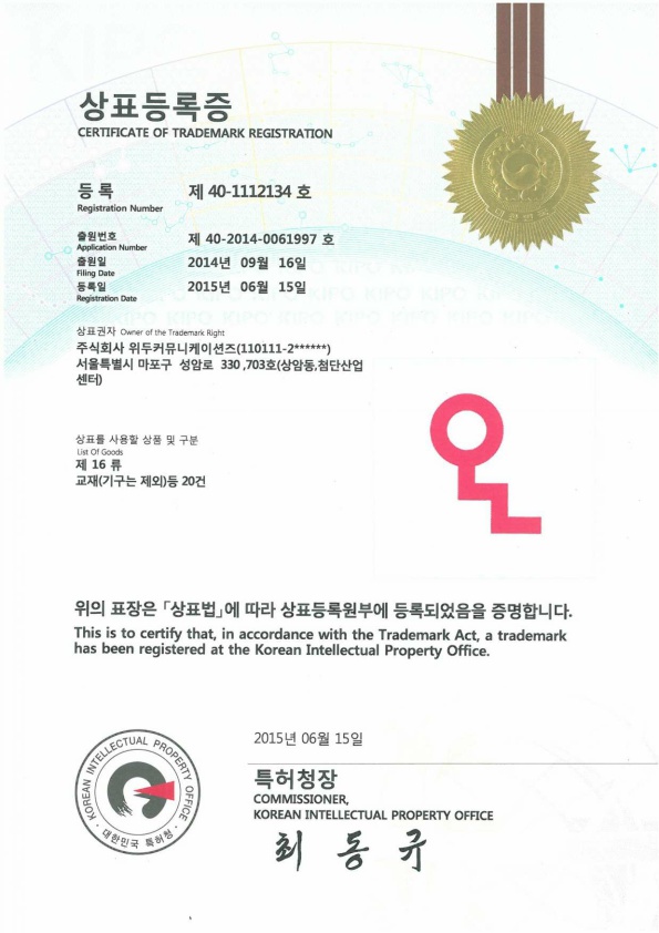 [Korea/Trademark] OLL 16 Class 페이지 정보 작성자 WeDu 댓글 0건 조회 5,070회 작성일 19-06-04 10:46 본문 2015-06-15 Trademark 40-1112134 16 Class List Previous[Korea/Trademark] OLL 09 Class 19.06.04 Next[Korea/Trademark] OLL 41 Class 19.06.04